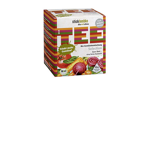 Bei Tee denkt wohl keiner sofort an Gemüse, sondern eher an Kräuter und Früchte, schwarze und grüne Teeblätter. Seit kurzem gibt es aber einige Firmen, die auch Gemüsetees anbieten. Auf der Biofach-Messe hatten wir einen probiert, aber die Numi Organics Savory Teas mit Tomate oder Fenchel sind hierzulande noch nicht gut erhältlich. Darum sind sie bei Bio-Food-Tester bisher nicht auf den Prüfstand gekommen. Nun liefen uns die neuen Bio-Gemüsetees von Stick-Lembke über den Weg, die es in vier Sorten gibt: Karotte-Curry, Rote-Bete, Spinat-Kräuter und Tomate-Ingwer, und wir haben sie gleich eingekauft.
