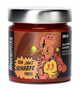 Grillen konnte man ja dieses Jahr schon öfters. Und wenn der Wetterbericht stimmt, bleibt es auch in den kommenden Tagen warm. Vor allem im Süden soll es richtiggehend sommerlich werden. Passend zur Grillsaison eine Paste im Bio-Food-Test, die „pur & für Saucen“ geeignet sein soll: „Der janz scharfe Fritz“. Auf der Packung sind zwei Chilischoten abgebildet, sie weisen den Weg: es wird auch im Mund hot, heiß. Noch schärfer soll die Variante „Der janz janz scharfe Fritz“ sein, übrigens benannt nach Firmeninhaber Jan Daniel Fritz. Doch die wollten wir uns nicht antun, zuuu scharf. Dass die Saucen aus Berlin kommen, ist auch „janz“ klar, dort ist Saucenfritz angesiedelt.