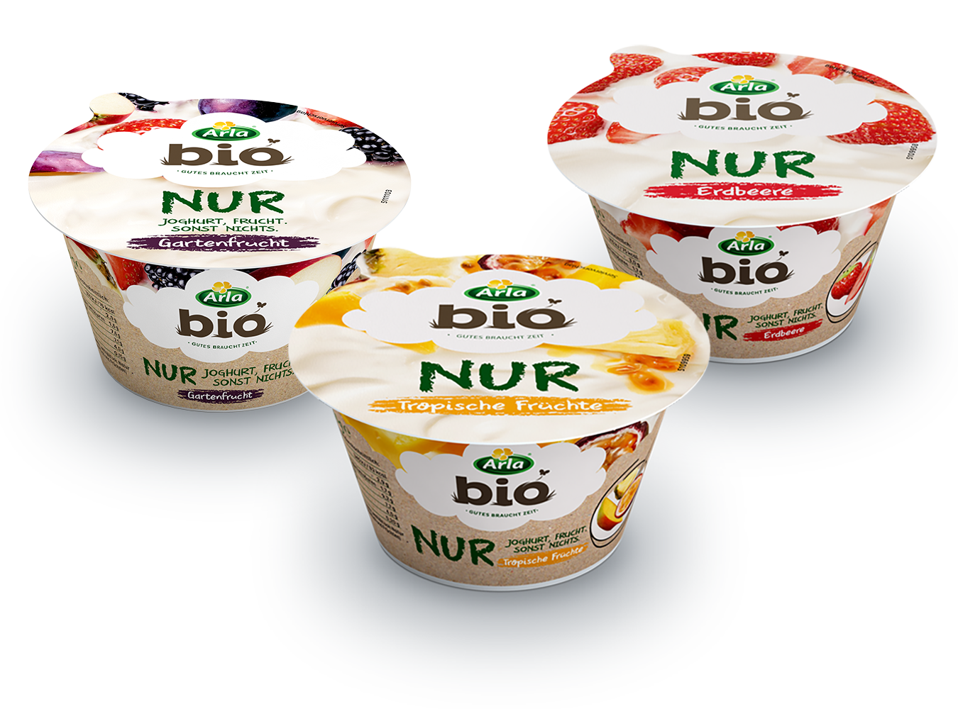 Der neue NUR Joghurt, Frucht. Sonst nichts. Sorte Gartenbeere von der Firma Arla hat laut Angaben auf der Packung tatsächlich nur sieben Gramm Zucker, der ausschließlich aus den Früchten stammt. Eine kleine Menge an getrocknetem Apfel sorgt hier neben den anderen Früchten für Süße und gibt dem Joghurt Bindung. Zusatzstoffe sind zudem nicht enthalten. Die Weidemilch für den Joghurt kommt von einem der sogenannten Arla-Milchbauern. Die Tiere haben laut Arla an mindestens 120 Tagen im Jahr Auslauf ins Freie – für sechs Stunden täglich. Sie erhalten Gras und Klee, Heu und Silage als Futter. Arla ist aber kein kleiner Biobauernhof, sondern eine der größten Molkereigenossenschaften in Europa, der rund 12.000 Milchbauern angeschlossen sind. Nicht alle arbeiten nach den europäischen Bio-Vorgaben, aber die für den neuen Fruchtjoghurt ohne Zucker natürlich schon. Zum Arlakonzern gehören neben Arla Bio übrigens auch die Marken Arla Skyr, Arla Hart- und Schnittkäse sowie die bekannten konventionellen Marken Lurpak, Hansano, Buko und Matilde.