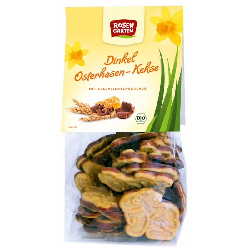 Früher brachte der Osterhase Schokoeier. Heute soll er auch Kekse bringen. Solche, die ihn wie die Dinkel-Osterhasen-Kekse von Rosengarten selbst abbilden. Viel Schokolade ist aber schon drin und dran.