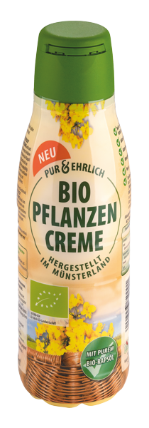 Auch im Bioladen sind sie angekommen, die Pflanzencremes. Die Pur & Ehrlich Bio Pflanzencreme der Münsterländischen Margarine-Werke J. Lülf wird gerade in vielen Bio-Supermärkten preisreduziert angeboten – und soll so das Kennenlernen erleichtern. Hergestellt wird das Produkt von den Münsterländischen Margarine-Werken. Sie stellen üblicherweise konventionelle Lebensmittel wie Milchdrinks und Margarine her – und auch eine herkömmliche Pflanzencreme namens Smanta.
